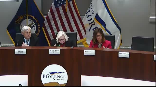 Florence City Council approved municipal order MO 2125 authorizing a management agreement with Troon Golf LLC for World of Golf after a 3'to—2 roll-call vote following staff presentations and public questions about succession, pricing and program continuity.