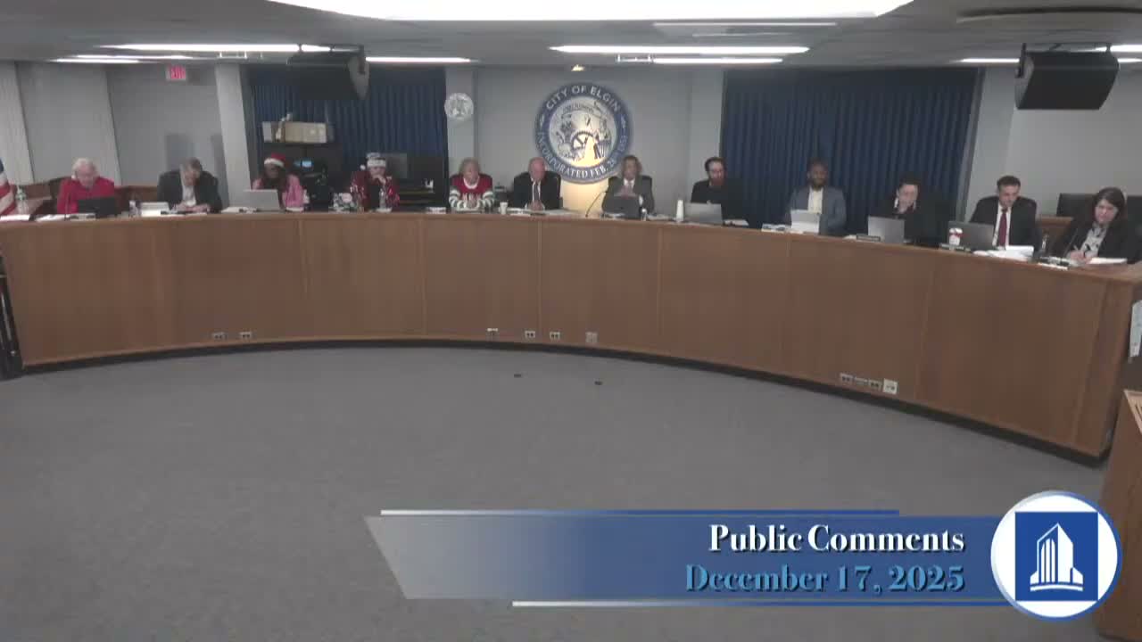 Several Elgin residents told the council they oppose a proposed development at 890 Gulf Boulevard by the Umayyah Group, citing traffic, noise, environmental and compatibility concerns; speakers said planning-and-zoning previously denied or failed to approve the petition.