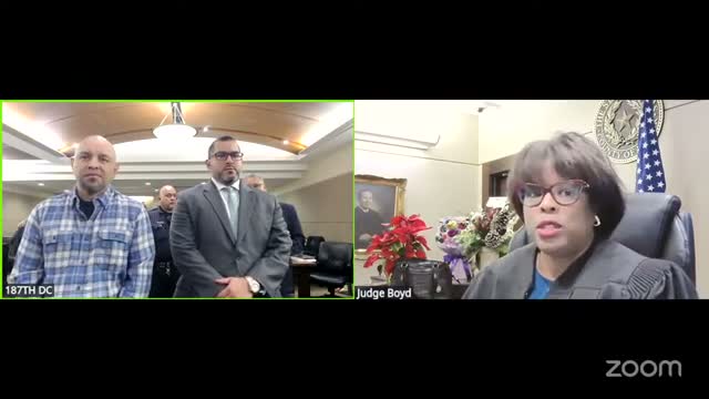 The presiding judge in the 187th District Court on Dec. 18 moved through a packed docket of pleas, revocation hearings and scheduling matters, ordering electronic monitoring in one case and revoking supervision with jail time in others while pressing attorneys to resolve outstanding discovery.
