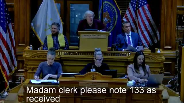 Councillors also waived readings and handled a batch of items (8–19), noting items 8 and 9 as received, referring items 10 and 11 to the finance committee, and noting items 12–19 as amended and received. Council leadership thanked the appointees and asked those appointed to remain after the meeting for any necessary swearing-in and certificate signing.