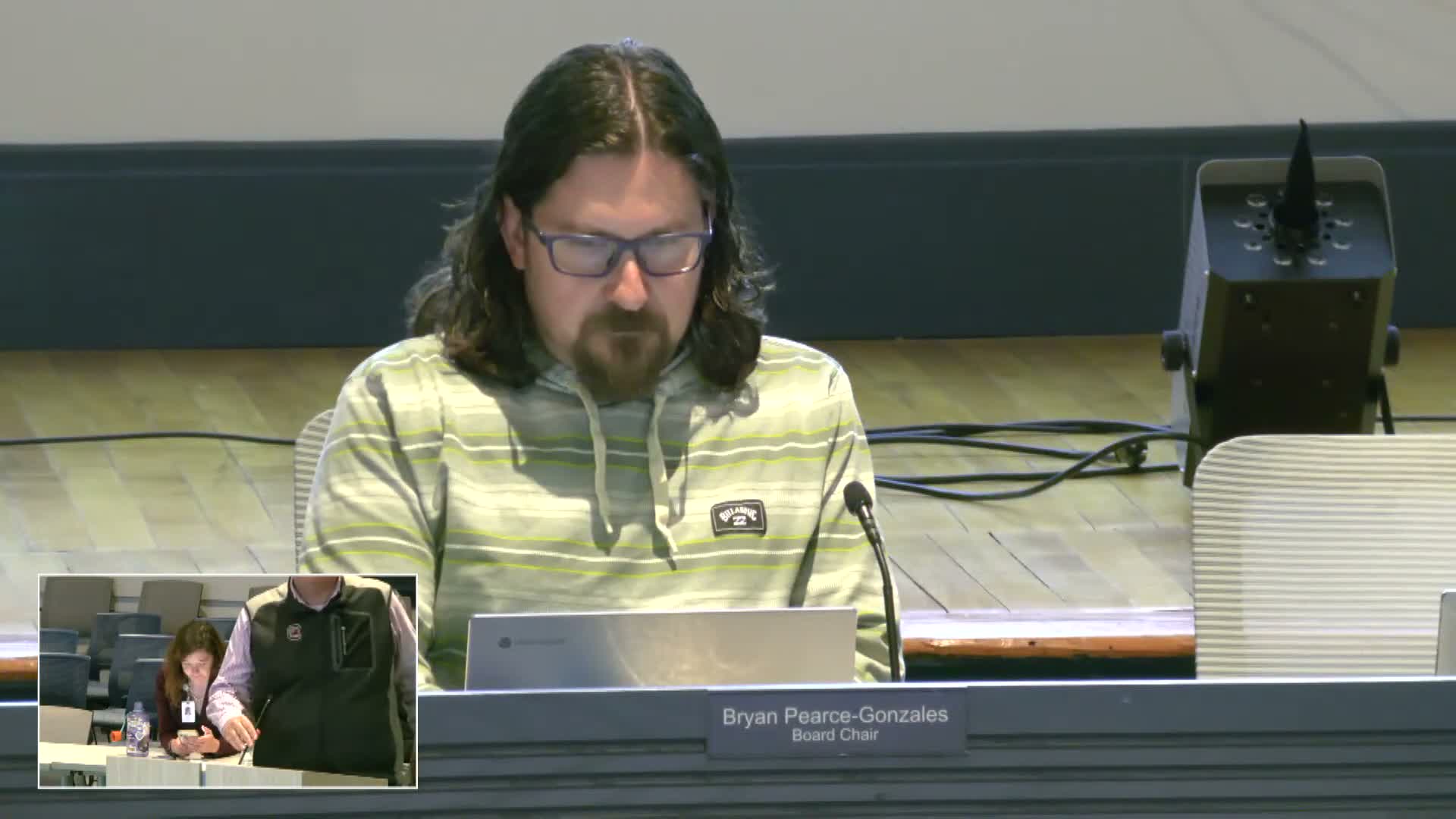The board concluded the open session by voting to retire into closed session under the Code of Virginia to discuss personnel and probable litigation matters; the citation was read aloud during the motion.