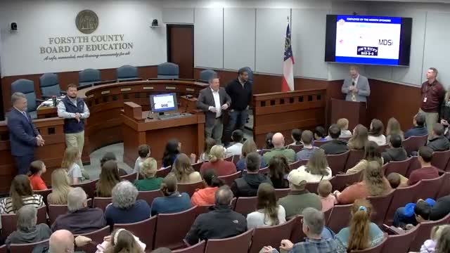 Forsyth County Schools’ Associate Superintendent Derek Hershey opened the Dec. 9 board meeting by honoring several student teams and staff for recent achievements and service.