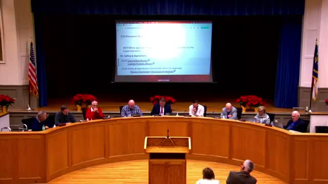 Safety and Operations Committee chair Walter Sperling reported scheduled middle and high school safety visits, an athletic-event clear-bag policy to start with basketball season, and a recommendation to surplus DWI vehicles from transportation; those recommendations will go to the full board for approval.