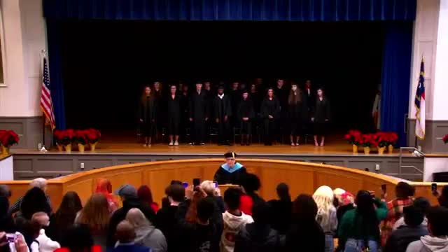 This transcript records a Turning Point Academy graduation ceremony (December 2025). The content is a school commencement — opening remarks, faculty recognition, a spirit reading, names of graduates, logistical instructions, and a principal’s verification that students met graduation requirements set by Cleveland County Schools and the state of North Carolina. Because this is a ceremonial school event rather than a civic government meeting or public-administration proceeding, it is not eligible for the civic-focused article generation workflow. No civic actions, votes, ordinances, or formal public-agency decisions requiring coverage are present.