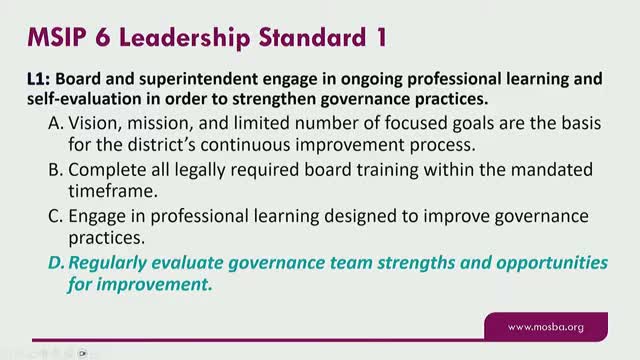 A facilitator told Lee's Summit R-VII board members at a governance workshop that the district's governance model was revised to emphasize student achievement and to make board roles clearer. "It is to, try to elevate student achievement," the facilitator said while outlining changes to the board role framework and the new wording adopted for several role descriptions.