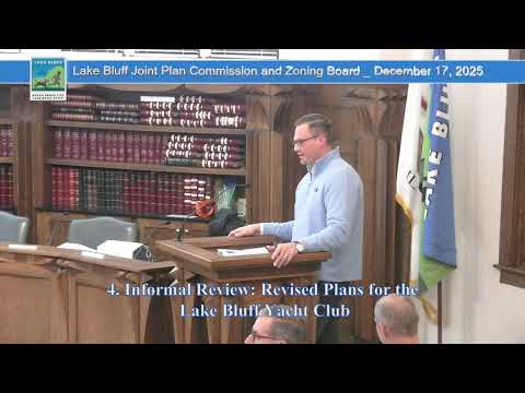 Taylor Overman, representing the Lake Bluff Yacht Club, presented revised plans for a new boathouse at the village beach during the Dec. 17 Joint Plan Commission and Zoning Board of Appeals meeting, saying the club’s goal is to expand access and programming for young families while addressing a multiyear waiting list for vessel storage.