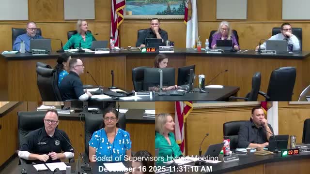 County staff presented the triennial update to adopt the 2025 California Building Standards Code (Title 24 parts 1–6, 8–12, and 2024 International Property Maintenance Code); the board completed first reading in title only and voted to advance the ordinance for final adoption at a future meeting.