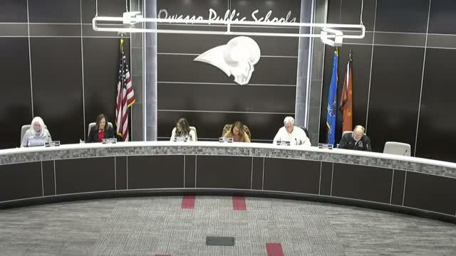 The board also recognized an Indian education team for a national nod to a 20-year JOM program in Owasso. A program representative asked the board for continued community support, saying the program's success "begins right here in this room" and thanking community members who have helped over the years.