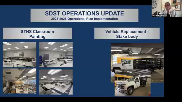 Mr. Watley, the district operations lead, told the property committee the district received a new operations truck that still needs outfitting (logo, lift gate, plow and salt equipment). "We are very, very excited about that," he said, and noted vendor work remains to complete the vehicle for winter operations.