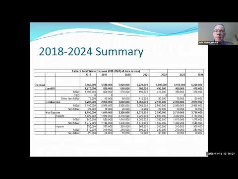 Scale and trend context: Extending the comparison back to the 2018 baseline used in the state Master Plan, Fisher said total disposal increased by about 500,000 tons from 2018 to 2024 (roughly a 10% rise), driven mainly by non‑MSW growth. He suggested this shift is why meeting the 2030 disposal‑reduction goal would likely require focusing on net exports and non‑MSW streams rather than in‑state disposal alone.