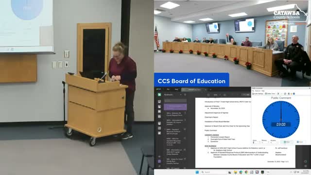 During public comment, Lori Fowler told the Catawba County Board of Education that students staged a walkout at Saint Stephen's High School during school hours and criticized the district for not informing parents in advance; she urged a policy change to ensure parental notification for similar events.