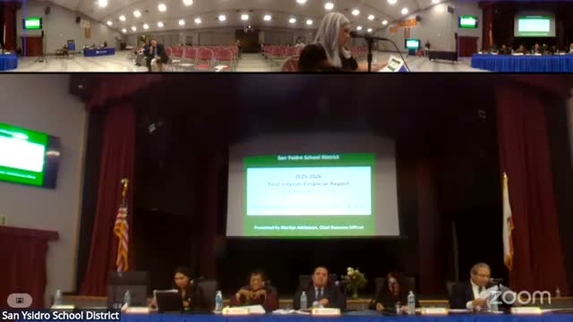 The San Ysidro School District business office presented the 2025–26 first interim financial report and warned trustees the district will submit a negative budget certification to the San Diego County Office of Education.