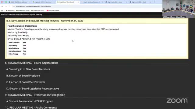 Board members and student advisors observed the ceremony and the leadership transitions extend through the coming calendar year. The board’s next regular meeting is scheduled for Jan. 12, 2026, at 6 p.m., the president announced.