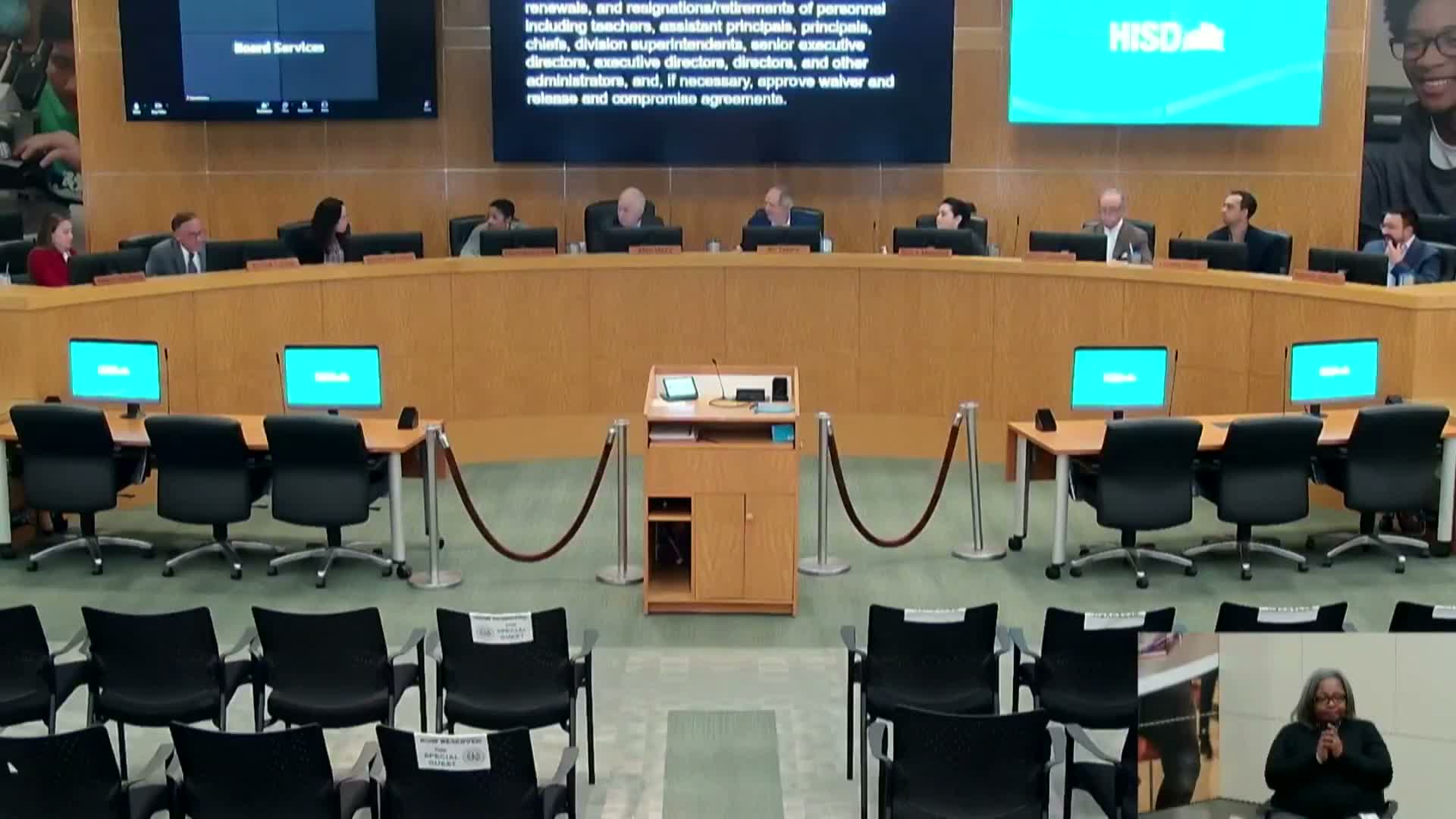 Houston — Following public comment and staff briefings on Dec. 11, the Houston Independent School District Board of Managers recessed to closed session under Chapter 551 of the Texas Government Code and later approved several personnel actions and resolutions authorizing surplus-property sales.