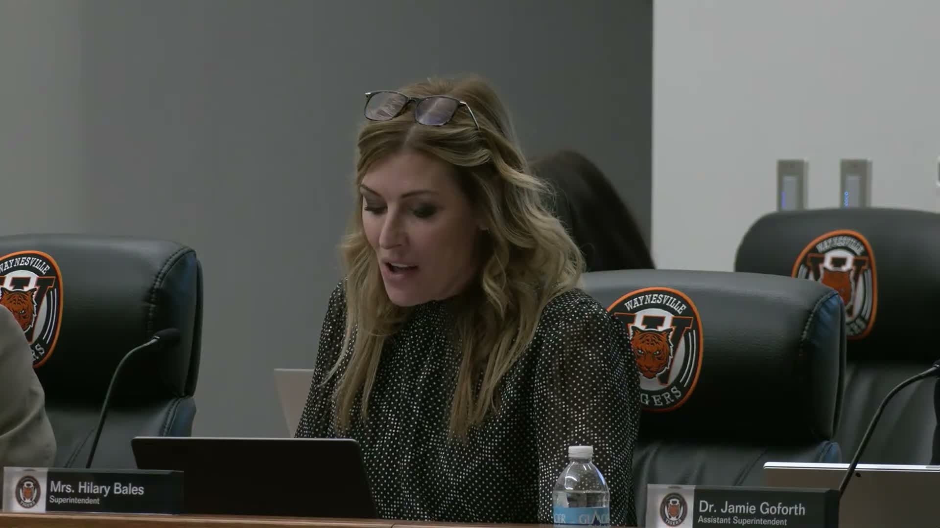 Mrs. Bales opened district announcements by telling trustees the Waynesville district “has received 90% of the possible points on the annual performance report,” marking the highest score since MSEP 6 implementation. Board members praised preschool staff and the expansion of the full‑day preschool program from two to six classrooms.