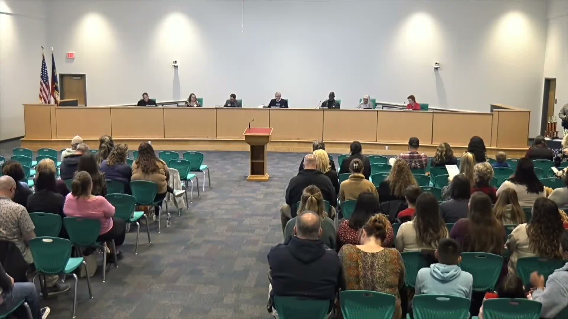 The board also mentioned a collaborative O Holy Night video by students and a local church (Cape Carteret area) that will be shared on the district's website. The spotlight segment concluded with board and public appreciation for the students and sponsors.
