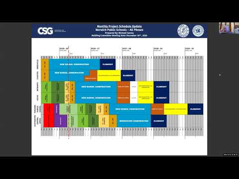 Construction managers and architects updated the Norwich Building Committee on progress at multiple sites, saying work is moving despite winter conditions and schedule risk from potential delays.