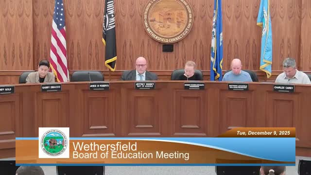 At the board’s late‑December meeting, Wethersfield Public Schools highlighted classroom work from English‑learner instruction and presented a signed copy of a new book by teacher‑author Heather Peshera.