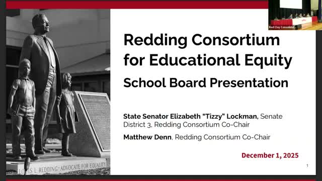 At a Red Clay School Board workshop, Reading Consortium co-chairs Senator Tizzy Lachman and Matt Denn outlined three redistricting models for Wilmington-area schools and said the consortium will vote on which model to draft on Dec. 16; American Institutes for Research cost estimates are due before that vote.