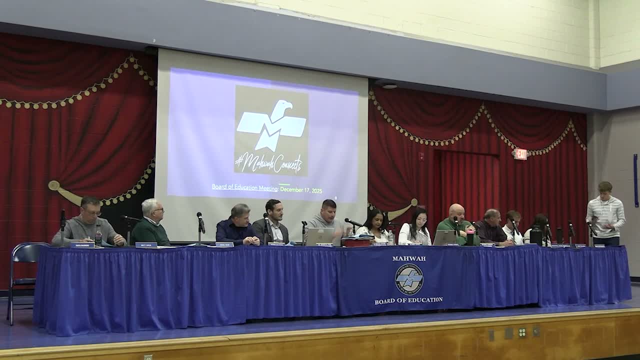 Board members outlined the scope of a special school district referendum covering renovations at Mahwah High School and other district facilities, announced a January–March information campaign, and said auditors reported a clean audit with one corrected payroll finding.