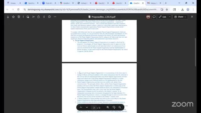 District staff proposed updates requiring parent support organizations to submit bylaws and officer lists annually and prohibiting district employees from serving as account signers (they may serve as president but not treasurer). Trustees raised concerns the wording could discourage employee participation and asked staff to consult volunteers and revise transactional language.