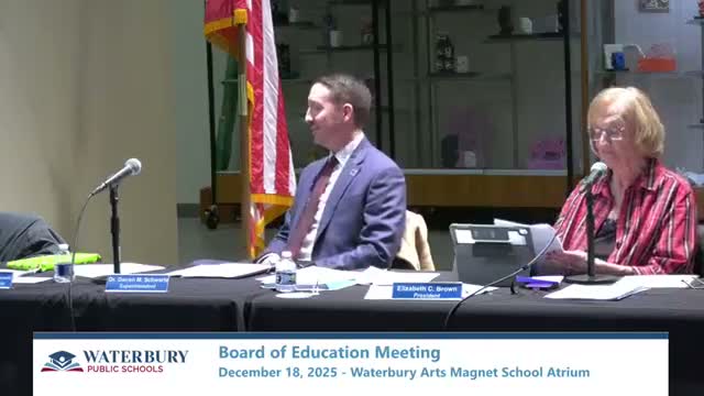 The board approved a memorandum of agreement with consultant Joseph Begno to support implementation of the commissioner's network plans for certain Waterbury high schools. Presenters said the work helps principals manage complex reporting and program infrastructure tied to state turnaround grants covering Crosby, Kennedy and Wilby.