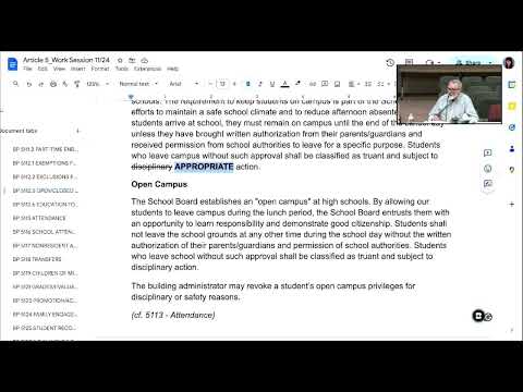 Trustees reviewed draft policy 5030, which compiles statutory requirements for school disciplinary and safety programming; debate centered on whether to retain the statute's word "program" or substitute "plan," frequency of required reviews, and whether to add direction for mental-health data collection.