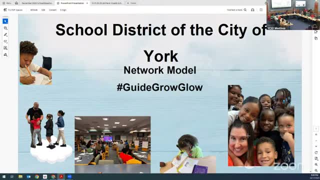 District leaders presented the York City School District's instructional networks model to the board, describing a multi‑network approach (Dream It Forward, Opportunity & Access, Schools of Innovation) that places coaches in buildings to support teachers, target instructional gaps and improve student outcomes.