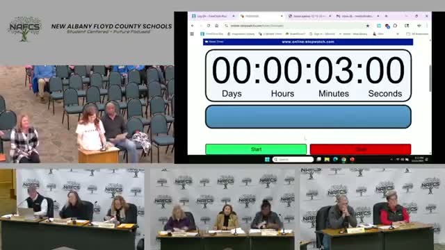 Board leadership acknowledged the comment. Separately during the public-comment period, board members and staff attempted to de-escalate a heated exchange between another speaker, Chris Miles, and the superintendent; board members agreed to attempt follow-up meetings with Miles and other concerned parties.
