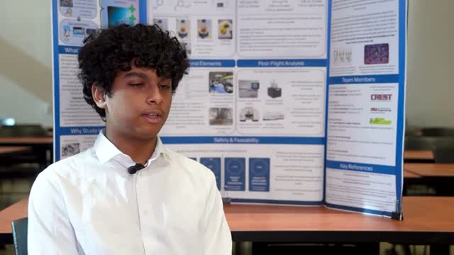 This transcript records a student presentation about a STEM competition (Student Space Flight Program). It does not contain civic decision-making, motions, votes, or public-agency policymaking. Per content rules, no civic articles will be produced.
