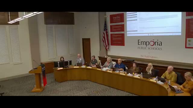 Amy Fair addressed the Emporia USD 253 Board during public comment, representing parents who use the district’s childcare program. She said the childcare program, established in 2023 with ESSER funds, should not be temporary and urged the board to plan for its continuation once ESSER funding expires.