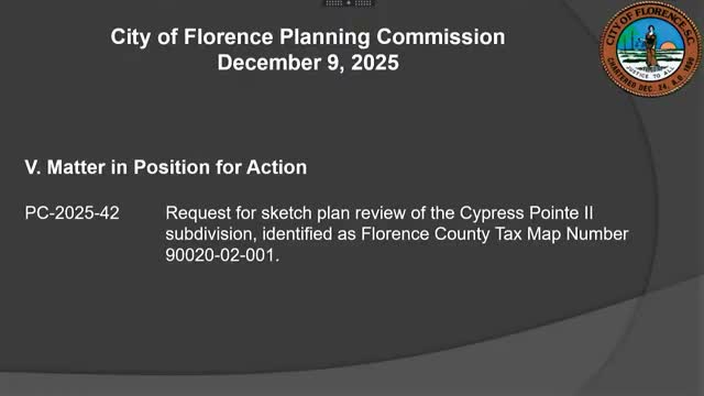 The Florence City Planning Commission voted to approve a sketch plan for PC 2025-42, a proposed extension of the Cypress Pointe subdivision, during its December meeting.