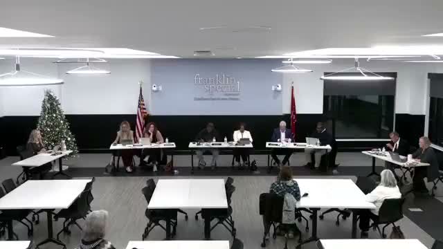 The Franklin SSD board voted to award a bid for kitchen equipment purchased with a portion of an FDA research grant, approving the recommended contract to Singer H and R for $304,572.22. District staff presented the item as “consideration of FDA grant funded equipment number 3” and recommended the award to the vendor for delivery and installation.
