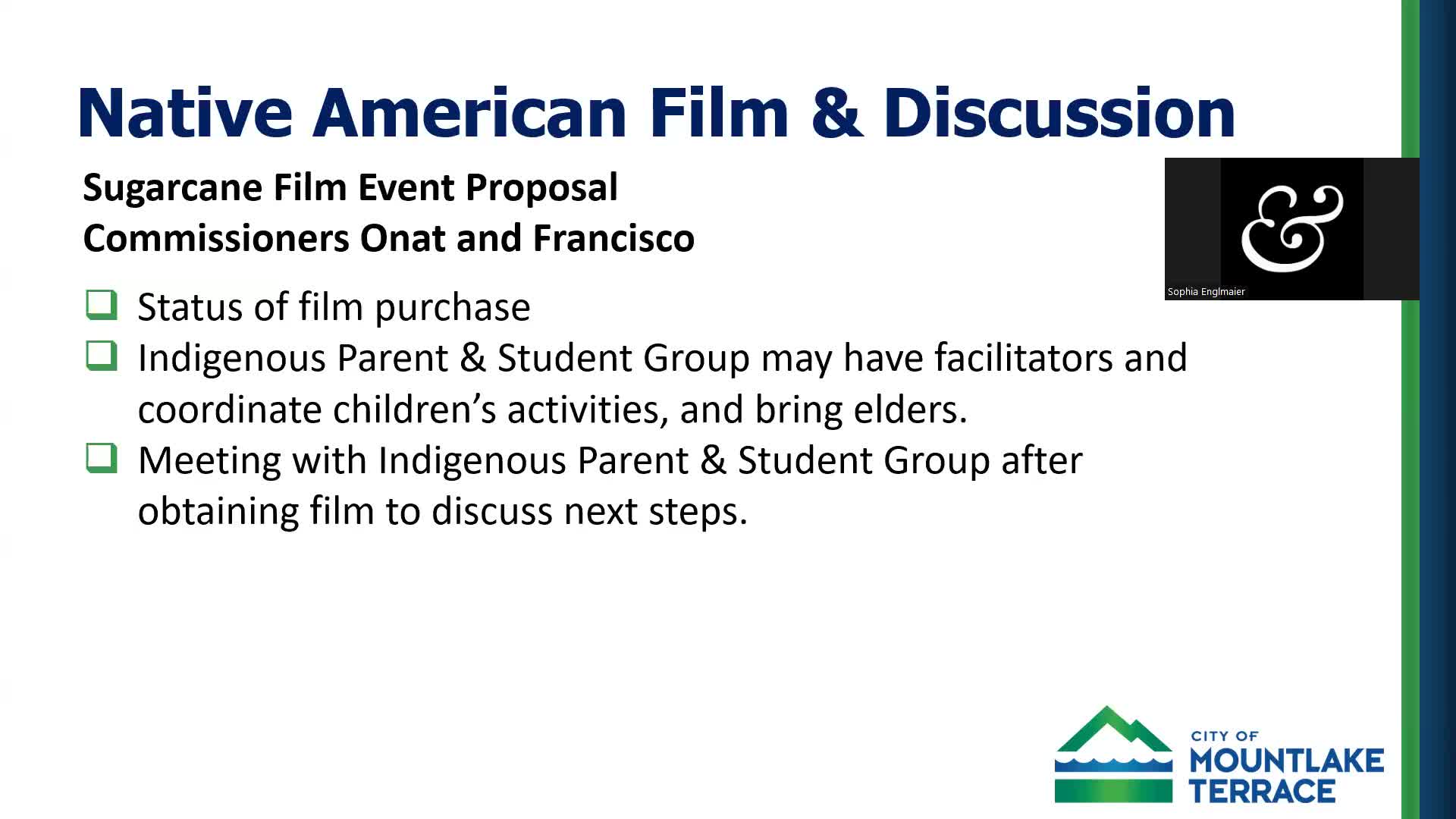 Members discussed an outreach email from a film producer who offered a free screening this year but indicated a "small fee" would likely apply if the screening is scheduled next year; commissioners expressed concern about unclear fee terms and whether holiday timing would reduce attendance. The group leaned toward seeking a clearer fee estimate and, if necessary, deferring to next year to coordinate with indigenous student groups.