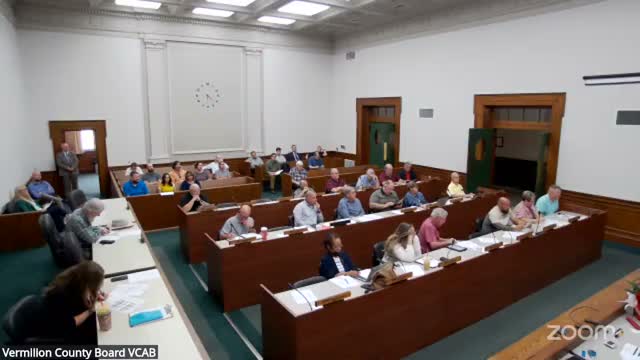 Board roll calls recorded in the transcript show formal approvals: the Ridge Farm decommissioning agreement and related resolutions were adopted on the record; the CVE road-use agreement passed with recorded results of "18 yes, 2 no, 7 absent." The CVE decommissioning agreement was approved in a subsequent roll call. Staff also explained that required permit documents and exhibit lists are part of the county's resolution and that applicants must supply the listed materials at the building-permit stage.