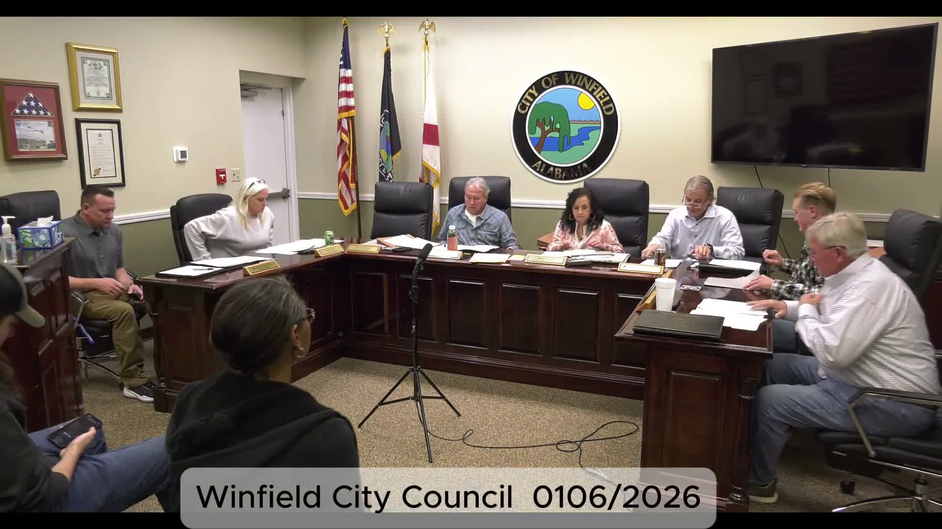 At its Jan. 6 meeting in Winfield, the Greenfield City Council proclaimed January 2026 Human Trafficking Prevention Month, reappointed a member to the Housing Authority, authorized the fire department to buy 10 sets of turnout gear, and approved solicitation of bids for a $2,078,936.46 renewal; all motions passed by voice vote as recorded in the minutes.