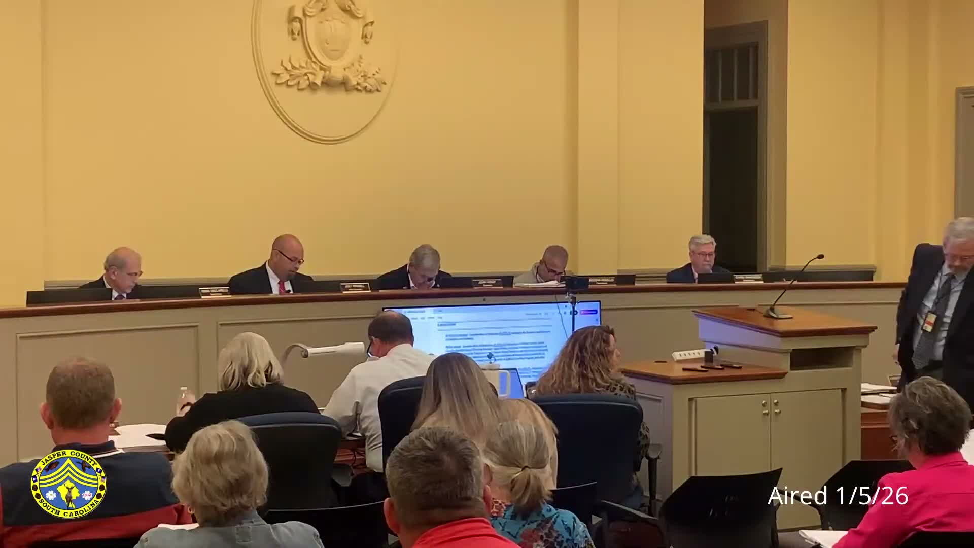 Jasper County Council unanimously approved a resolution on Jan. 6 directing $180,961 of Beaufort‑Jasper Community Partnership funds to an 8‑inch water main extension to close a loop that will serve the Salt/Northpointe development.