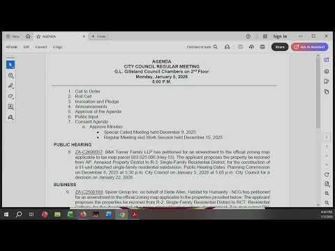 At a Jan. 5 Dawsonville City Council meeting, developers sought rezoning (ZAC2600057) of a 35.31-acre annexed parcel to R‑3 for up to 91 single‑family homes. Residents from Thunder Ridge and nearby neighborhoods opposed connections that could increase traffic on State Route 9 and raised child‑safety concerns; staff recommended stipulations and a broader traffic study.