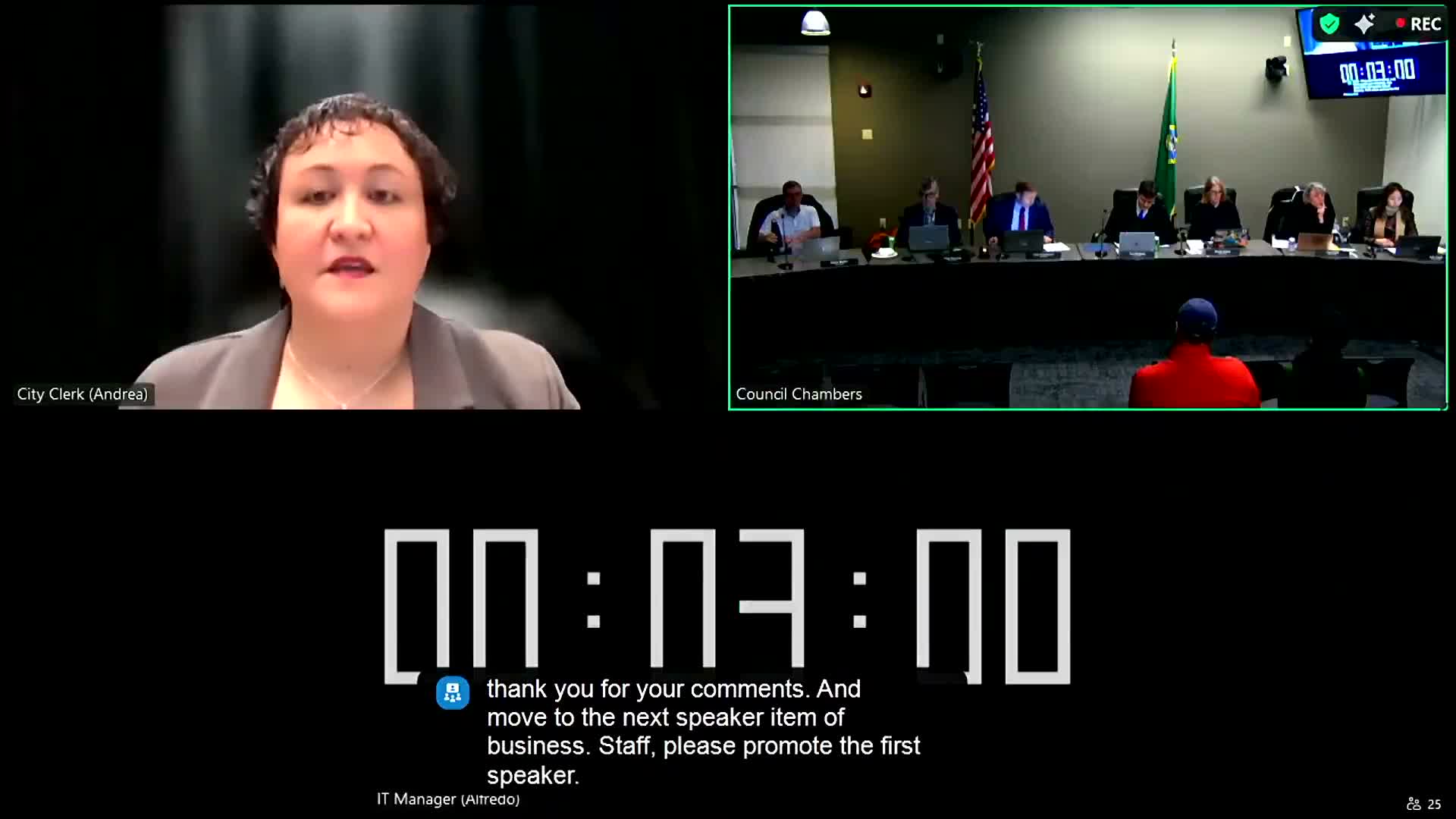 Smith said she sent repeated emails to city staff, including the interim city manager and the former police chief, and that police “refused to write one police report for months.” She said she was ultimately arrested after defending herself and described being treated poorly while the person she described as the attacker received what she called “kindness and support.” Smith said she has lost employment and business opportunities and that she believes the city’s oversight failures are tied to its handling of an affordable-housing program and a tax-exemption contract; she said the management company received “tens of thousands of dollars” in fee waivers while offering 20 percent affordable units and that the city ended a program (MFT) after she began speaking publicly about those issues.