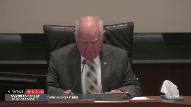 An unnamed commissioner addressing the meeting said state legislation has recently shifted costs to St. Mary’s County, costing the county “close to 8,000,000 in revenue,” and urged the county’s three delegates and senator to oppose further measures that would require the county to pick up added expenses.