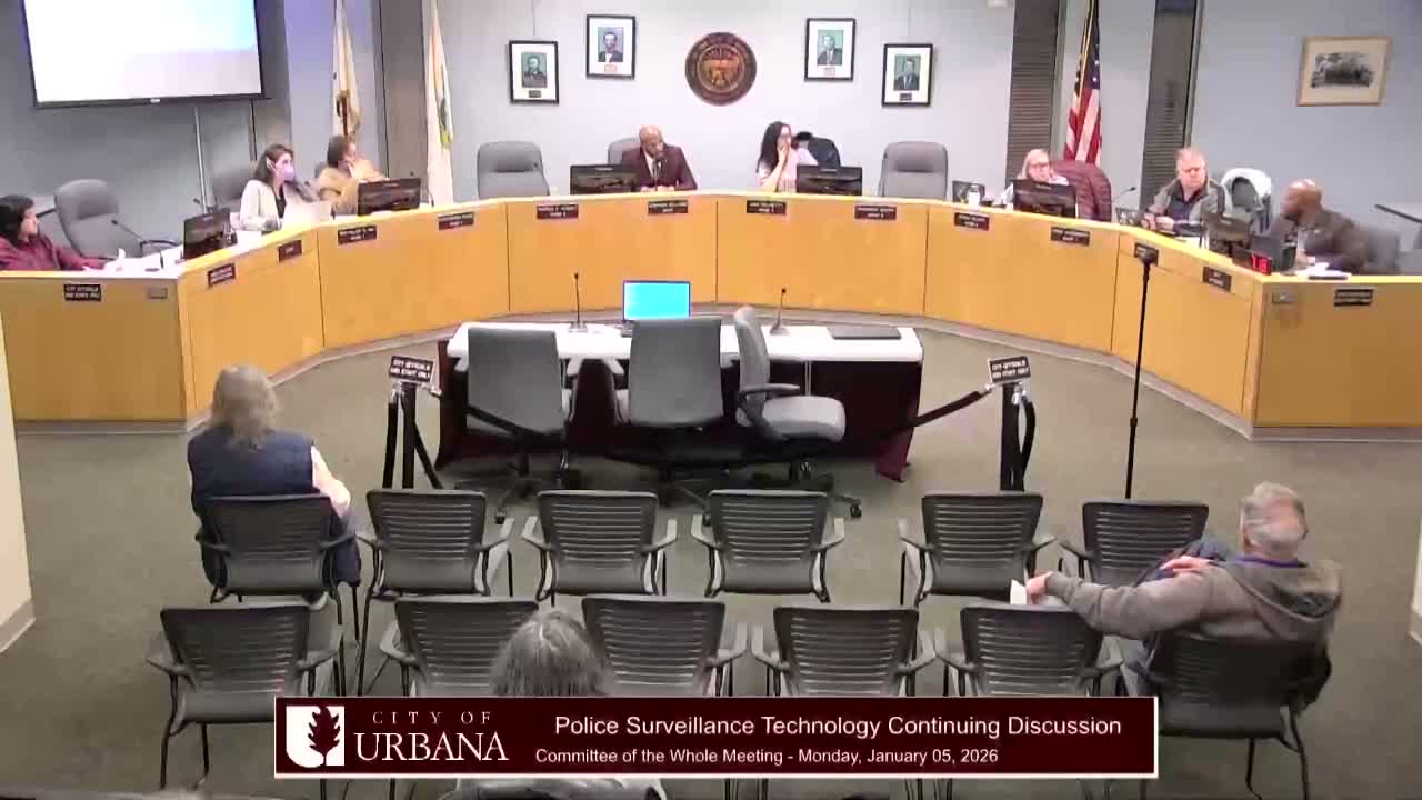 The Urbana Committee of the Whole continued Jan. 6 its months-long review of a surveillance-technology ordinance, with council members requesting more detail about specific technologies and scheduling staff presentations before final action.