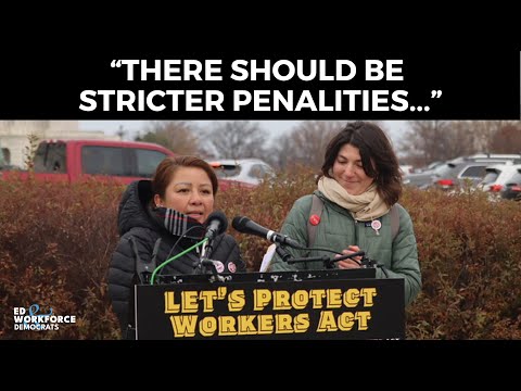 She urged stronger penalties for violations of federal labor law and said employers should not be allowed to block union recognition without consequence. "Debería haber sanciones más estrictas para la ley laboral. No deje a los empleadores de oponer a los sindicatos," she said.