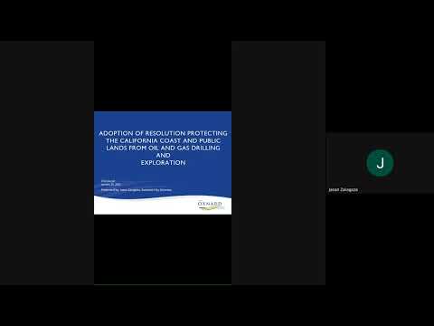 Assistant City Attorney Jason Zaragoza told the Oxnard City Council the Trump administration released a proposed offshore oil-and-gas leasing program and that Council member Perez has requested the council consider a resolution opposing new leasing off the Central Coast before BOEMs 01/23/2026 comment deadline.