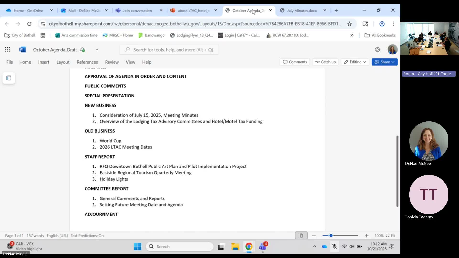 City staff briefed the Lodging Tax Advisory Committee on how lodging-tax revenues may be used under state law, Bothell's 2% local rate and Snohomish County's separate $2 TPA assessment, and discussed World Cup marketing, grants and regional coordination.
