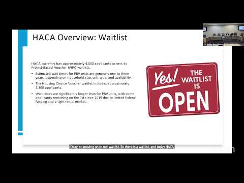 Santos described HACA’s use of project-based vouchers to support affordable development—HACA can project-base up to 20 percent of its vouchers (about 535 agencywide) under HUD rules—and listed several ongoing LIHTC projects HACA is supporting. She also told the committee that, after recent HUD funding guidance, HACA will ‘‘pause on issuing any additional project based vouchers for [new] developers’’ while honoring commitments already made; she said the authority expects further guidance by summertime.