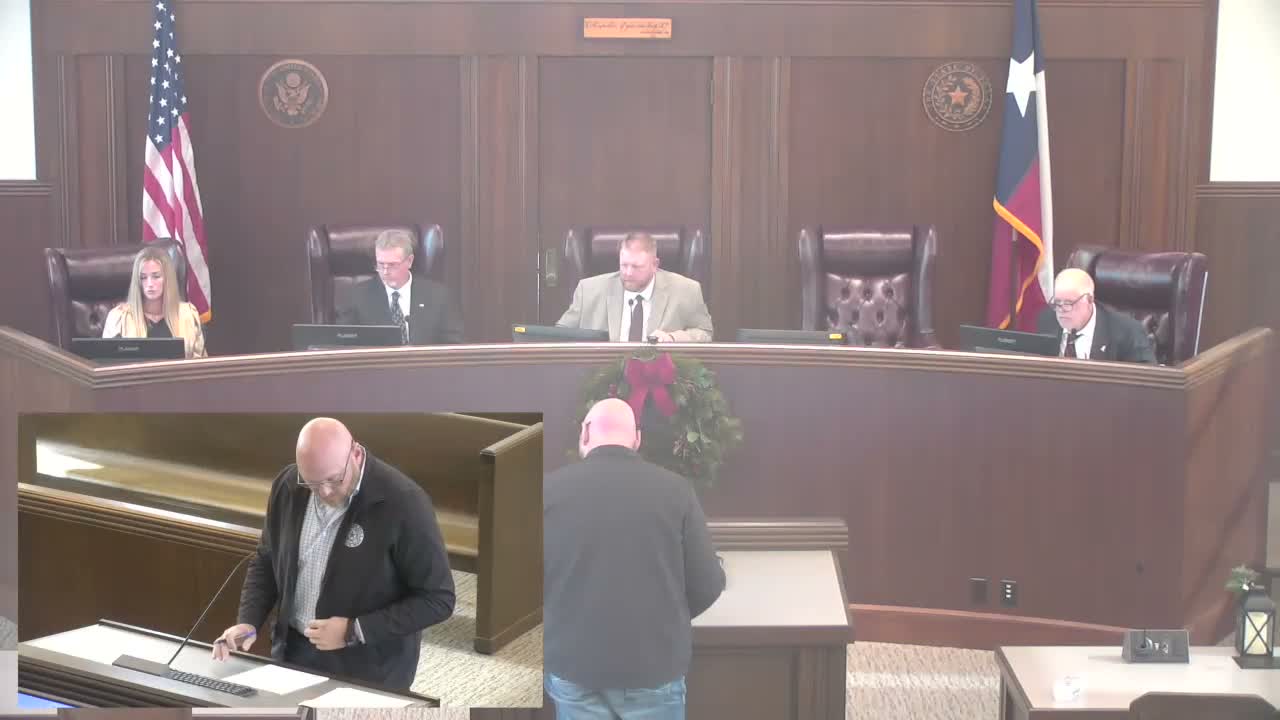 The court voted to accept a Texas Water Development Board grant to purchase and install outdoor warning sirens in flood-prone areas, authorizing the county judge to sign the grant documents. County staff said the initial allocation could be up to $1,000,000, with an additional $250,000 available; the county will work with cities and neighboring jurisdictions to site sirens and streamflow gauges on a regional basis. "Texas Water Development Board is submitting a $1,000,000 grant to fund that operation," Patrick Pender told the court during the presentation.