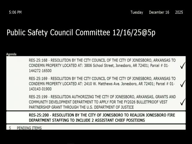 The Jonesboro Public Safety Committee voted to forward to the full City Council a resolution that would create a second assistant fire chief position in the Jonesboro Fire Department and realign duties between operations and training/administration.