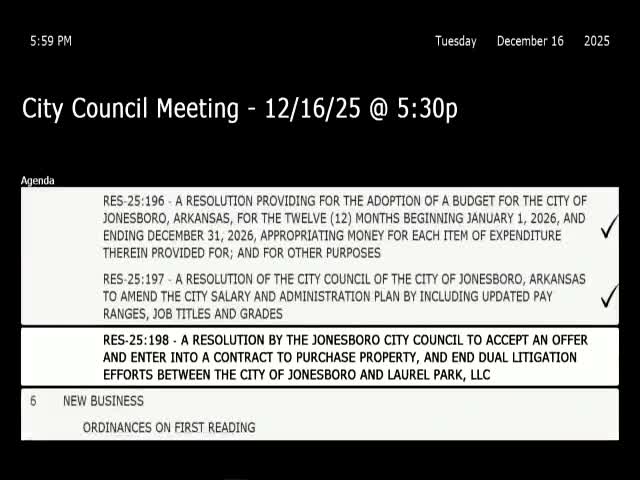 JonesboroCityCouncil on Dec. (final meeting of the year) deferred action on a proposed $750,000 purchase of multiple parcels owned by Laurel Park LLC, returning the matter to the finance committee for further study.