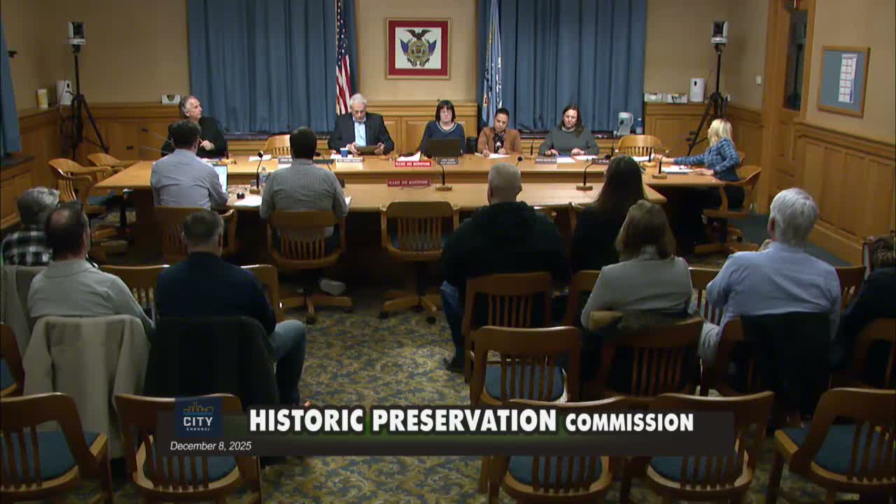On Dec. 8 the Milwaukee Historic Preservation Commission held a storefront COA for further design work, denied an after‑the‑fact vinyl window approval, approved demolition of a deteriorated elevator shaft at St. Mary's, denied a synthetic roof product (allowing alternative if insurer won't cover clay/concrete), and held the proposed Wells Street canopy while approving other University Club alterations.