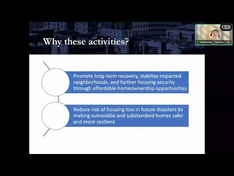Several participants asked whether acquisition of vacant or tornado‑impacted lots and homes would be reimbursable when paired with new construction. Hubbard clarified that acquisition of vacant homes for rehab/reconstruction is a separate activity from new construction, and acquisition and rehab/reconstruction costs listed in the action plan are eligible for reimbursement after HUD environmental review and release of funds. She noted the activity covers vacant homes (not simply vacant lots) and that environmental review must clear any property before contract or construction begins.